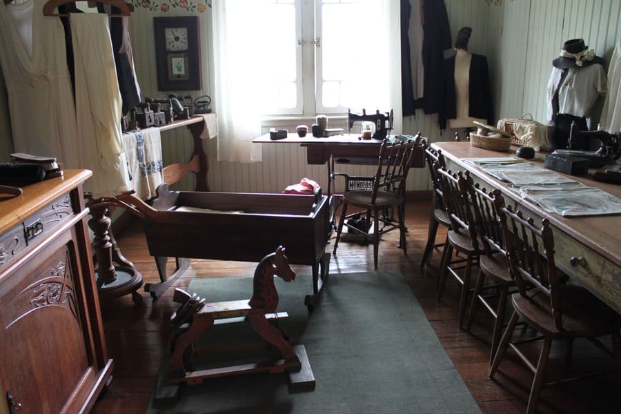 A sala de costura, onde mãe e filhas dedicavam-se a pequenos reparos e à confecção de roupas utilizadas no cotidiano.