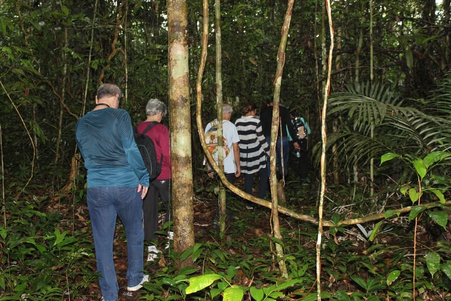 Acompanhados do guia Samir, que foi nos explicando tudo sobre a fauna e a flora da região, caminhamos cerca de 2.3km em meio à selva.