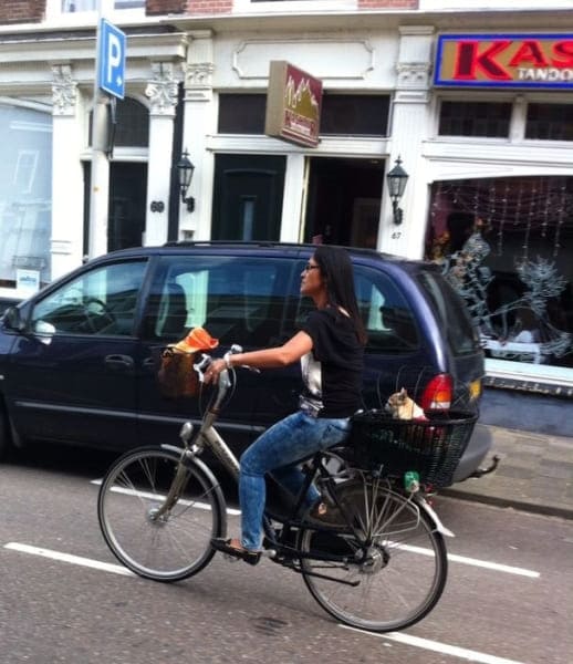 E eu nem estou considerando as acrobacias de guiar, segurando guarda-chuva e carregando criança e compras na garupa. Melhor deixar pra holandesada, que é tudo profissa nessa área…