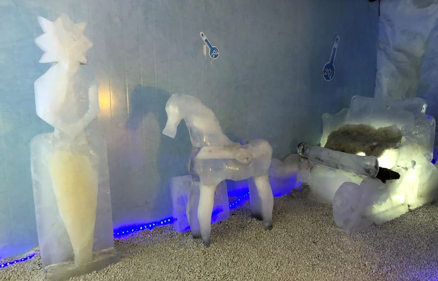 As esculturas e o mobiliário do Ice Bar Mundo Gelado