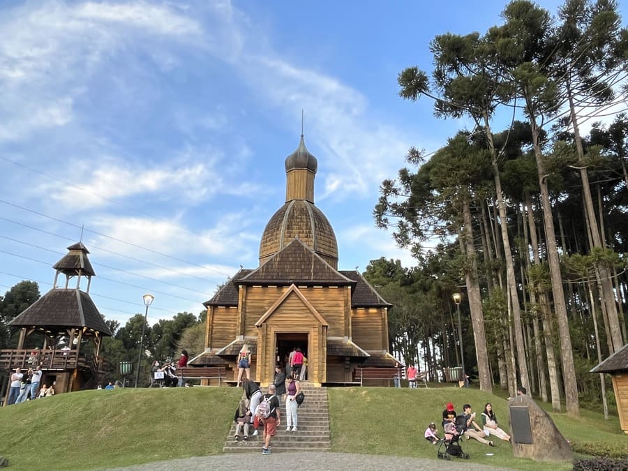 O Bosque Alemão conta, também, com uma réplica de uma igreja de madeira, que funciona como uma sala de concerto.