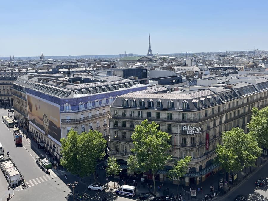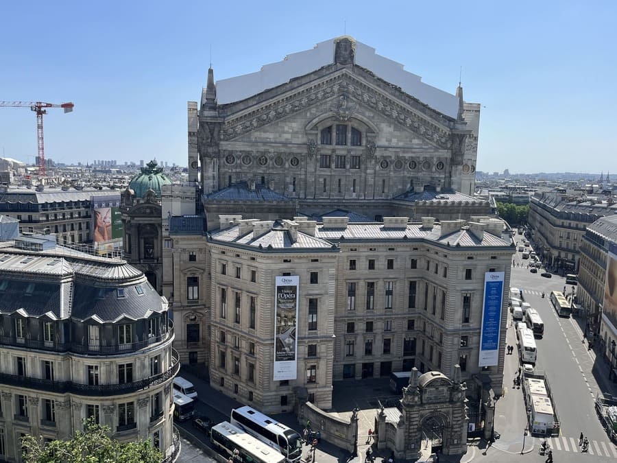 Dá pra ver a Torre Eiffel, a Ópera Garnier e boa parte da cidade.
